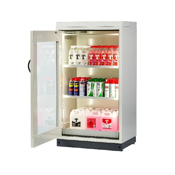 Paloturvallinen myymäläkaappi syttyvien nesteiden, painekaasusylinterien ja painekaasupakkausten turvalliseen ja asianmukaiseen varastointiin.